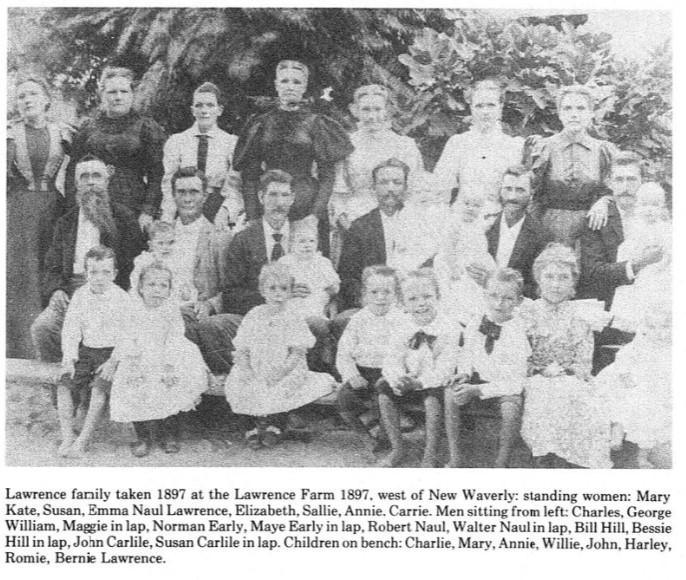 George Washington Lawrence and his wife Sarah Whitley were born in Illinois during the first decades of the 1800s. Their parents were from Virginia and were part of the migration from the original colonies to the Midwest that started after the Revolutionary War. They married in 1854 and moved the next year to the Sabine district of Mexico (East Texas) along with Sarah’s parents, Mills and Elizabeth Whitley and her brothers and sisters later they settled in Walker County. In 1836 George fought for Texas Independence at San Jacinto. They owned a farm west of New Waverly where they started a family in the early years of the Republic of Texas.