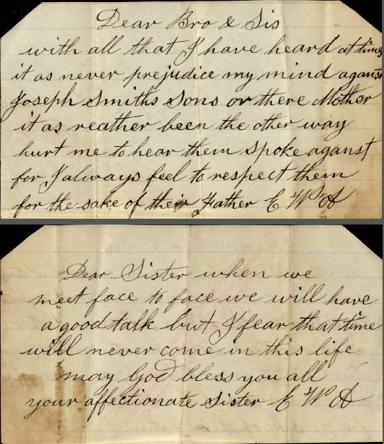 Elizabeth died 21 February, 1894 and Sarah a year later on 15 August, 1895. The sisters never saw each other after arriving in this new land and although they had their differences, their love remained constant. In one of the notes [undate] penned to Sarah, Elizabeth said, “Dear Sister when we meet face to face we will have a good talk but I fear that time will never come in this life. May God bless you all.”