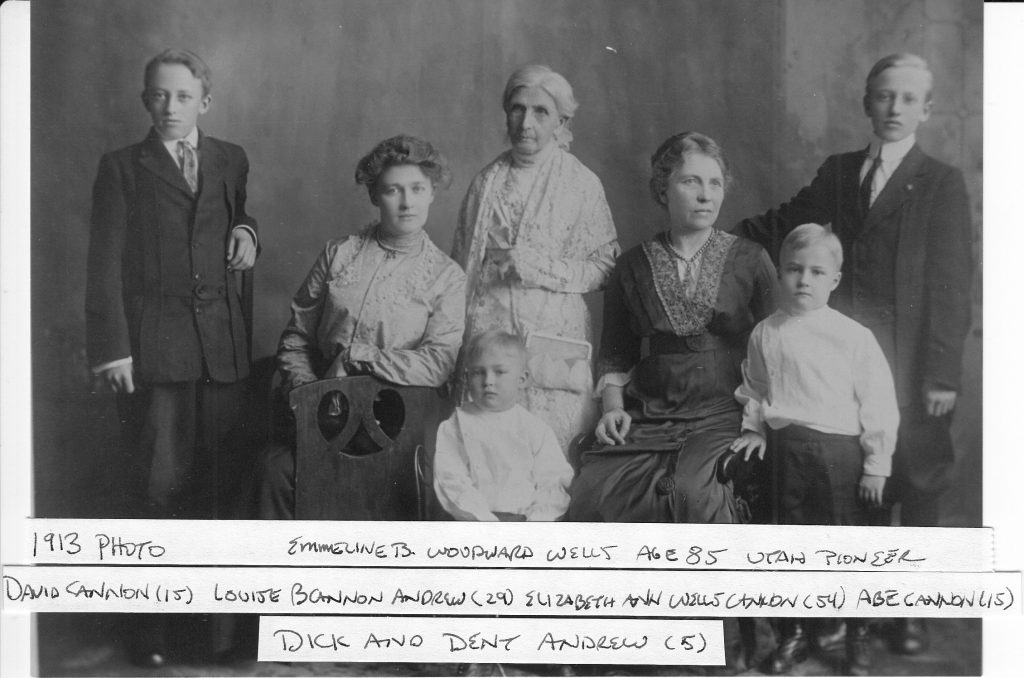 They were all first generation converts to Mormonism following the church’s instruction to gather together to their new mountain home. The Cannons, Andrews, Croxalls, Hoggs, and McLeans were first generation Americans who crossed the Atlantic from England and Scotland after their conversion to Mormonism in Europe. William Lowe was also an English immigrant who came to the St. Louis area early enough to serve in the Union army during the US Civil War. The Hoaglands, Daniel Wells, Emmeline Woodward, and Nannie Farley Lowe descended from colonial immigrants who arrived in the New World as early as 1610 in Jamestown and 1620 on the Mayflower.