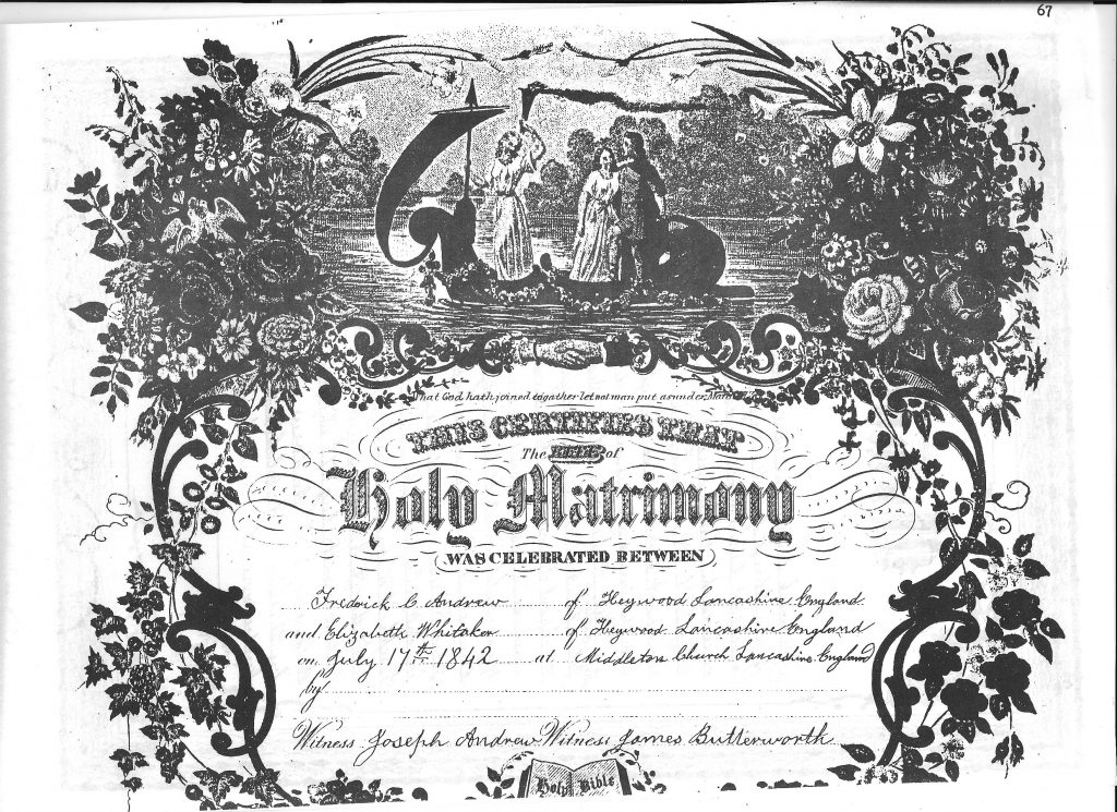 Our Ancestor, and their daughter Mary, married Richard Andrew the son of the immigrant blacksmith, Frederick Andrew.