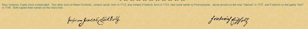 Johan Friedrich Eicholtz was a colonial immigrant to Pennsylvania.  Like many at that time, he went by his middle name.    He was born in Wurttemberg in 1723 and arrived in Philadelphia, September 27, 1746, on the “Ann Galley” sailing from Rotterdam.