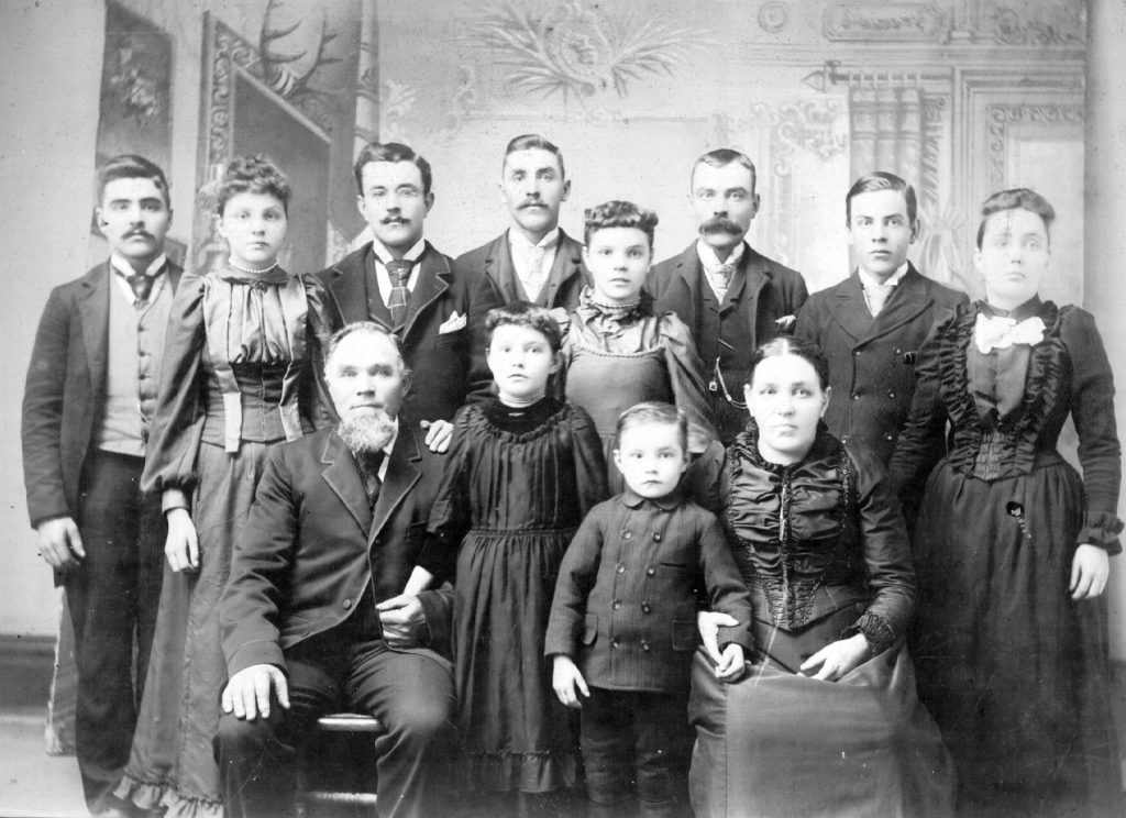 Back Row: Wilhelm Friedrich Nicolai, Martha Nicolai, Johannes Herman Nicolai, Karl Edward Nicolai, Jydia Nicolai, Franklin B. Nicolai, Albert Nicolai, and Anna Nicolai.  Front Row: John Gottfried Nicolai, Rose Susanna Nicolai, Peter Nicolai, and Susanna C. Hoffmaster Nicolai